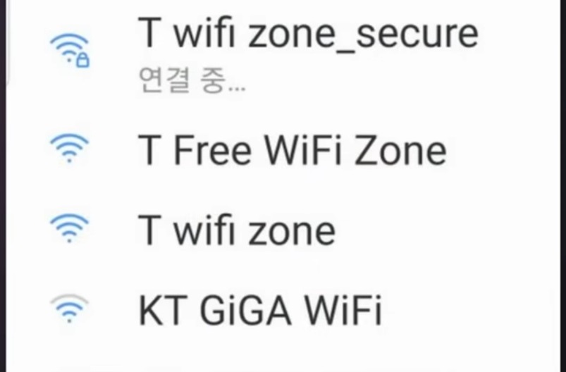 와이파이 목록에서 '무료'(Free)가 포함된 와이파이를 찾으세요. 예를 들어, SKT는 'T 무료', KT는 'KT 무료', LG U+는 'U+zone' 와이파이를 클릭합니다.