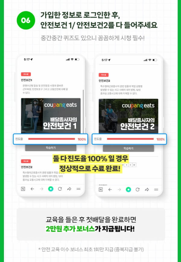 *안전교육을 이수하면, 신규 배달파트너에게 2만 원 현금 지급됩니다.